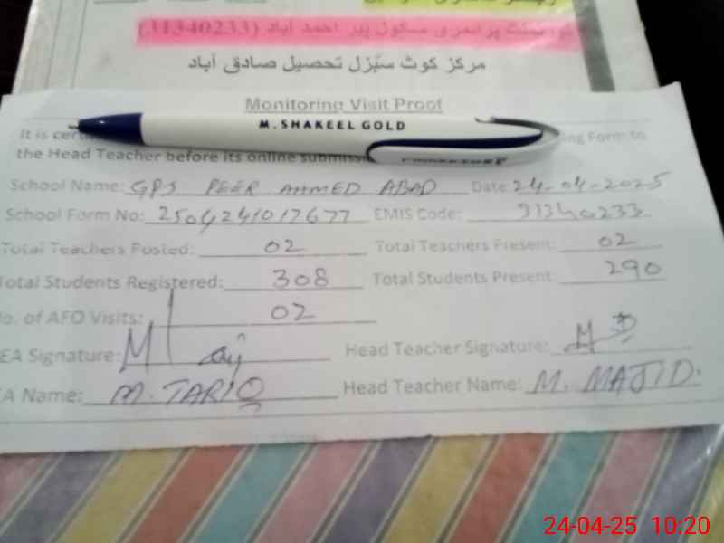 | EMIS Code: 31340233 | Name of School: GPS PEER AHMAD ABAD | |||