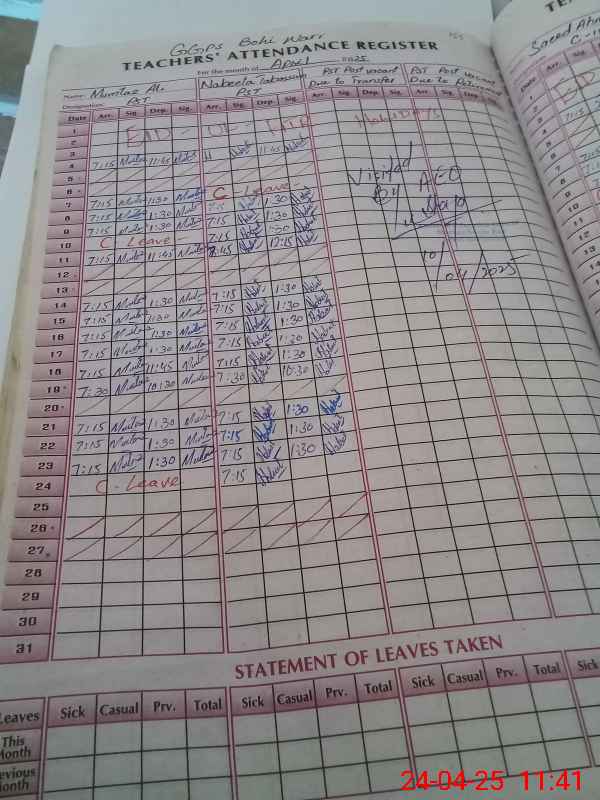 | 42**** | Mu**** Al**** | PST | Regular | 1 | 0 | 0 | 0 | 0 | 0 | 0 | 0 | 1 | Casual |