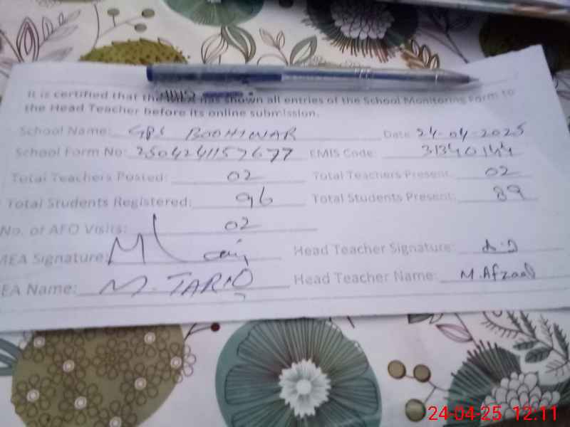 | EMIS Code: 31340144 | Name of School: GPS BASTI BOOHI WAR | |||