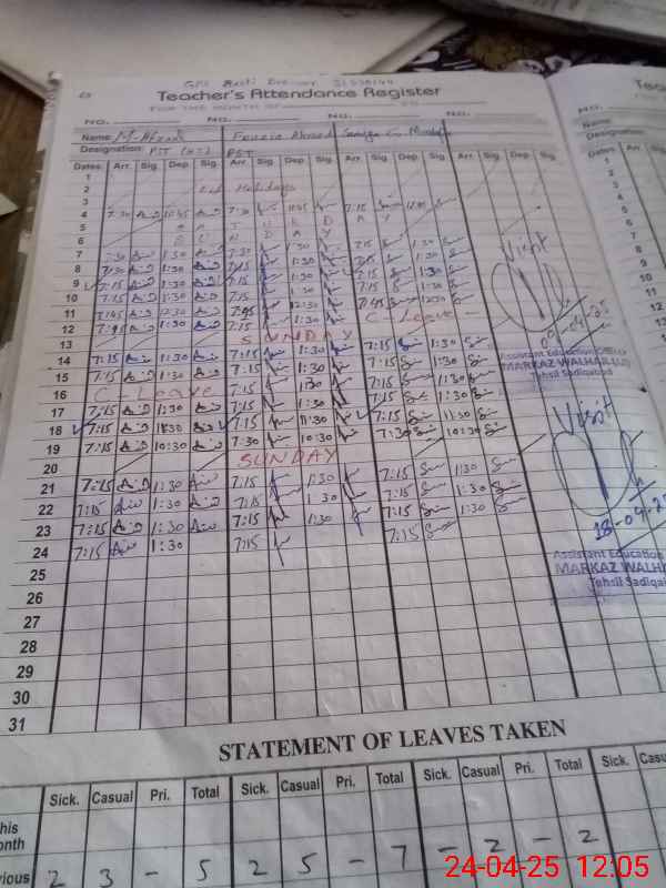 | Name: M.**** Designation: (School Headmaster's/Headmistress's) PST Phone/Cell Number: 03**** |