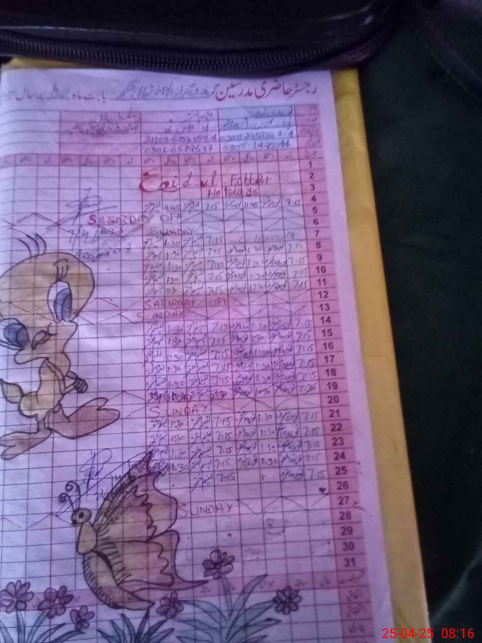 | CNIC | Full Name | Designation | R/C | Absence During Last Calender Month |