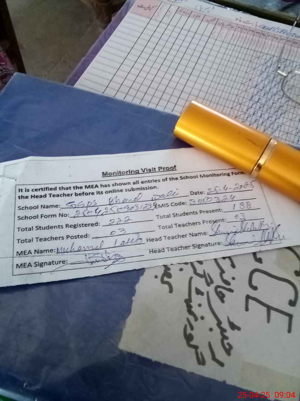 | EMIS Code: 31150324 | Name of School: GGPS BHAND WALI | |||