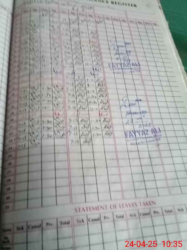 | CNIC | Full Name | Designation | R/C | Absence During Last Calender Month |