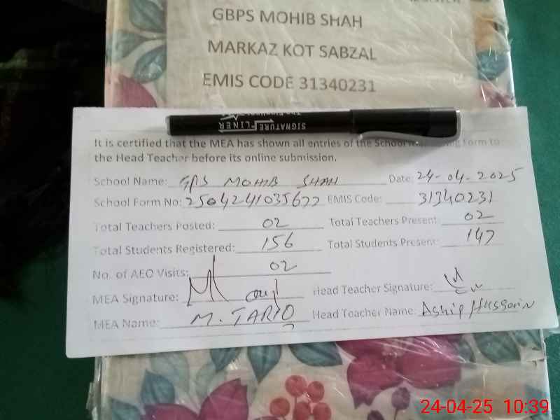 | EMIS Code: 31340231 | Name of School: GPS MOHIB SHAH | |||