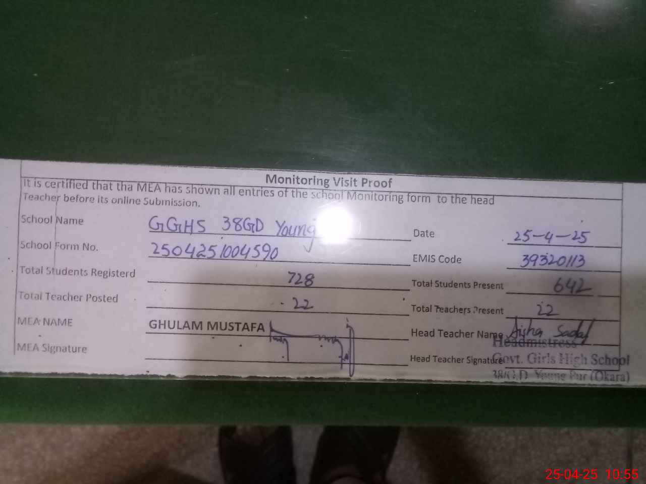 | EMIS Code: 39320113 | Name of School: GGHS 38/G.D YOUNG PUR | |||