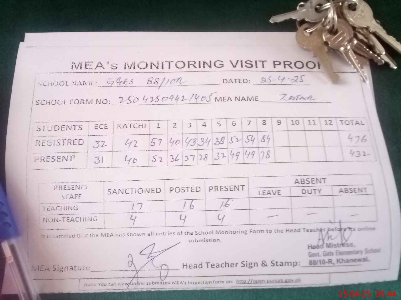 | EMIS Code: 36420109 | Name of School: GGES 88/10-R, KHANEWAL | |||