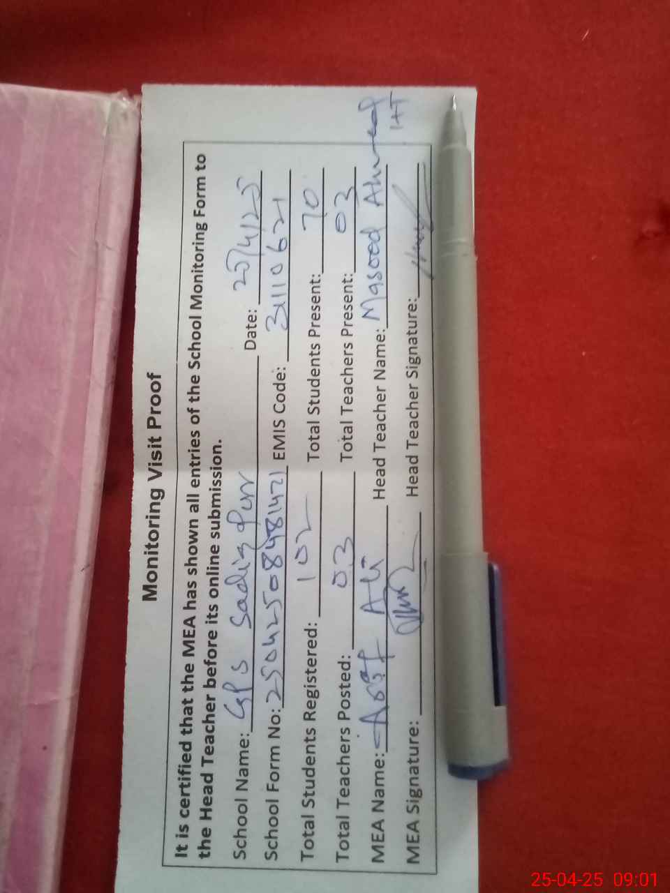 | EMIS Code: 31110621 | Name of School: GPS BASTI SADIQ PUR | |||