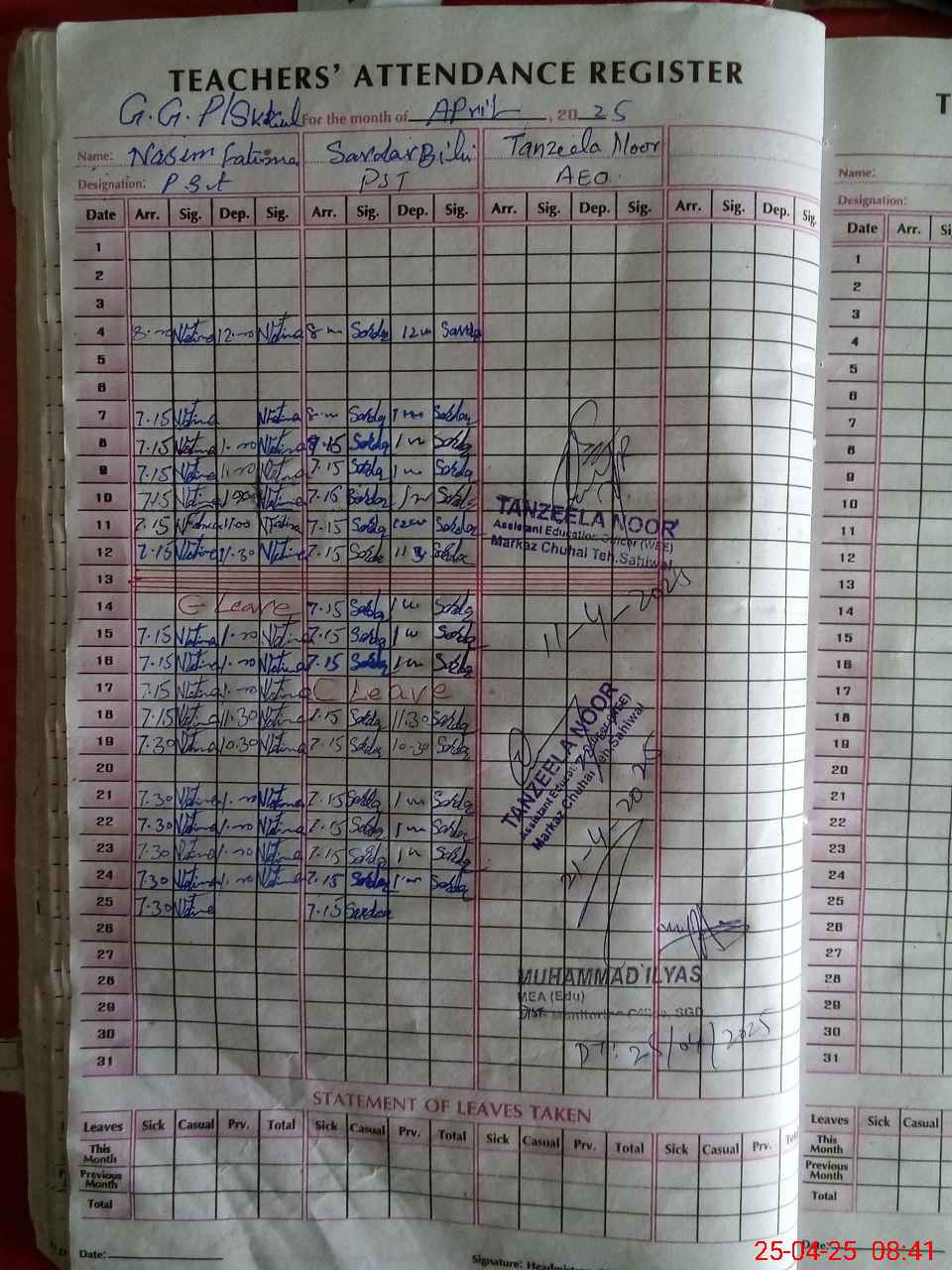 | Attendance Register | Head Teacher | MEA with School | Visit Proof |