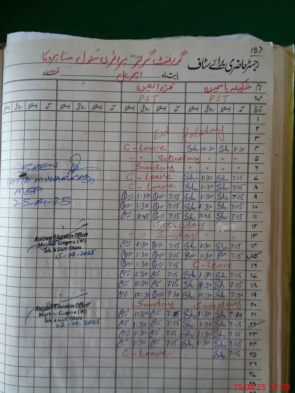 | District: OKARA | Tehsil: OKARA | Markaz: GOGERA-FEMALE | Level: Primary | |