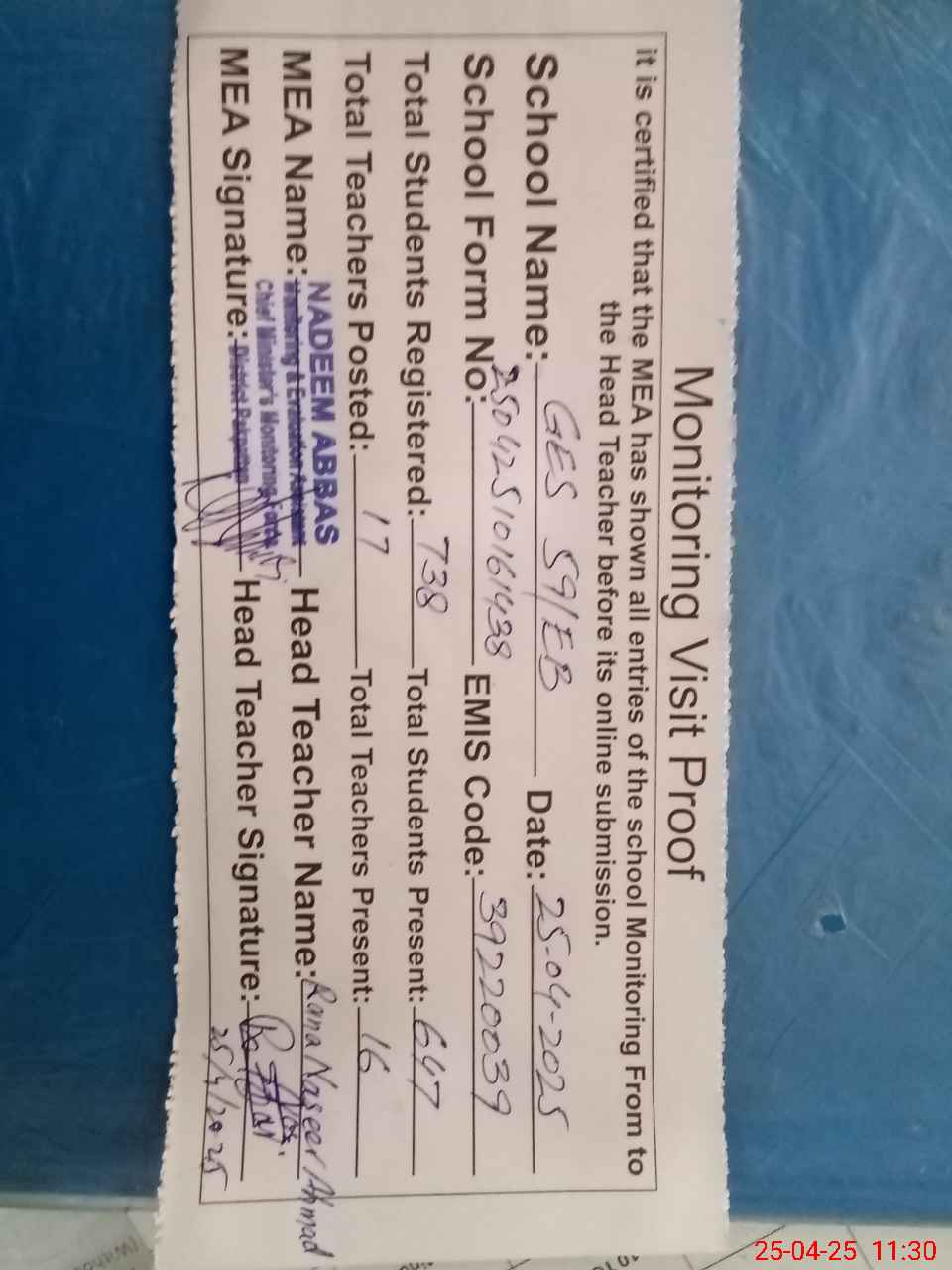 | EMIS Code: 39220039 | Name of School: GES CHAK NO. 59 EB | |||