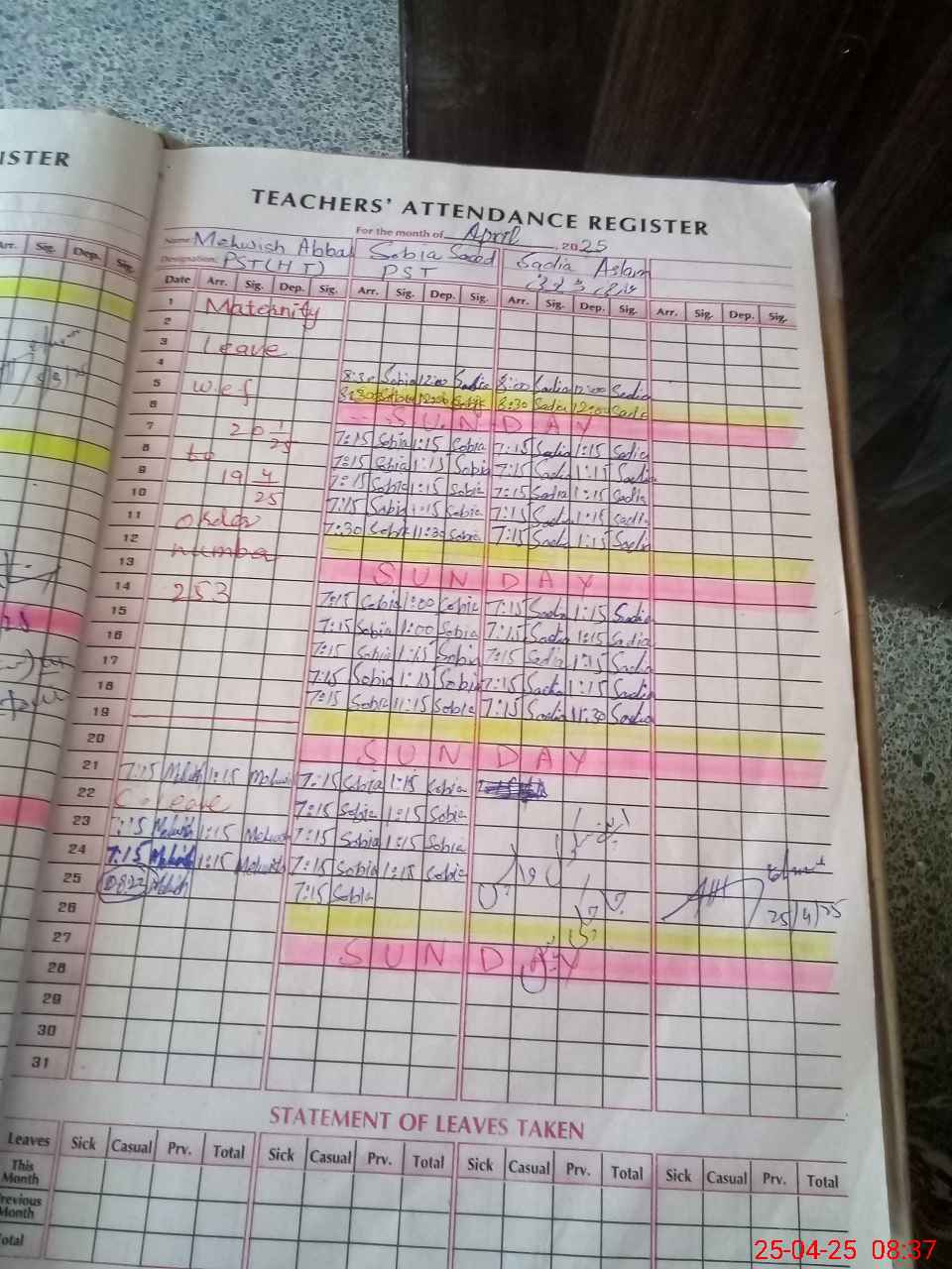| Name: Me**** Ab**** Designation: (School Headmaster's/Headmistress's) PST Phone/Cell Number: 03**** |