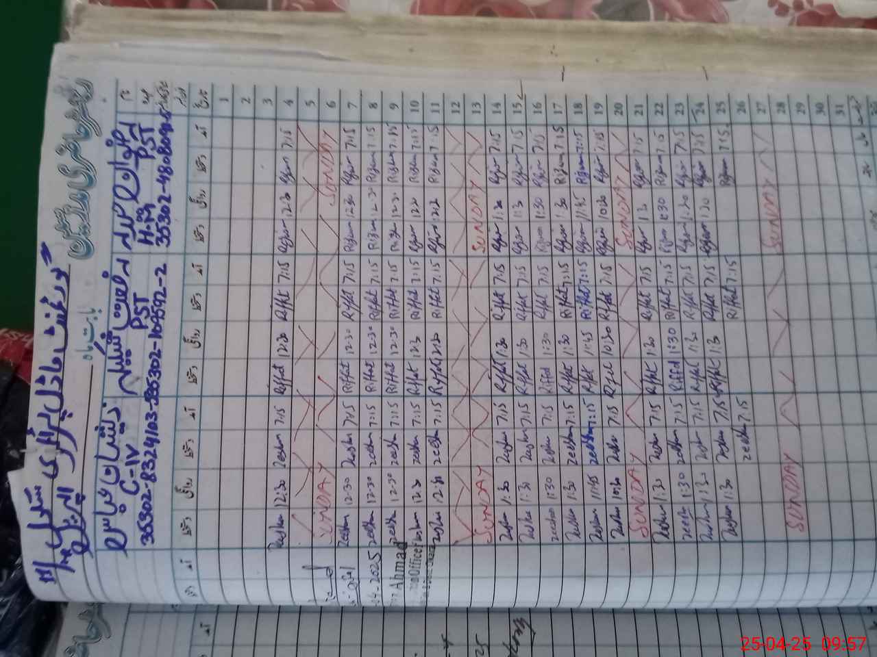 | CNIC | Full Name | Designation | R/C | Absence During Last Calender Month |