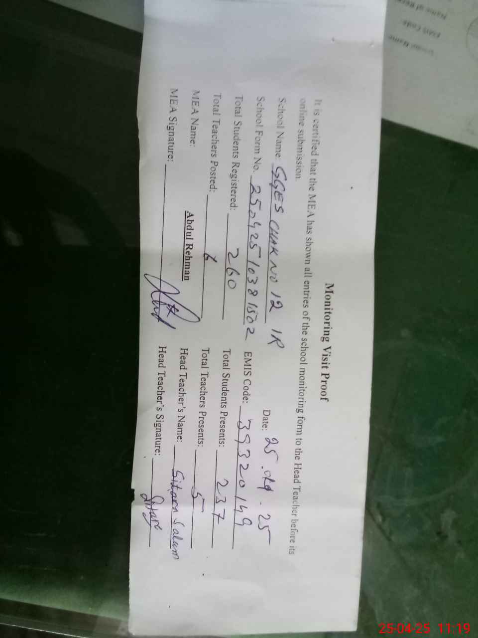 | EMIS Code: 39320149 | Name of School: GGES CHAK NO. 12/1-R | |||
