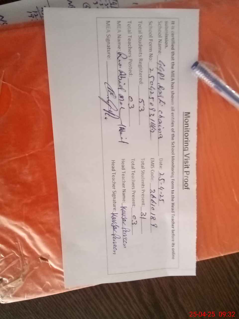 | EMIS Code: 36610189 | Name of School: GGPS BASTI CHAINA MOZO WAHI CHANI KHAN | |||