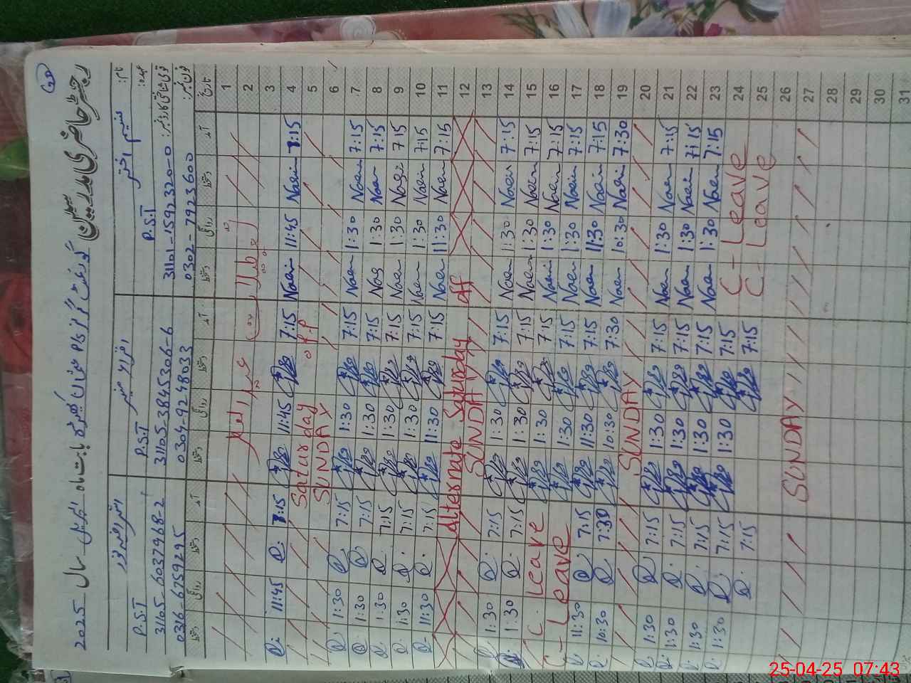 | Name: Iq**** Mu**** Designation: (School Headmaster's/Headmistress's) PST Phone/Cell Number: 03**** |