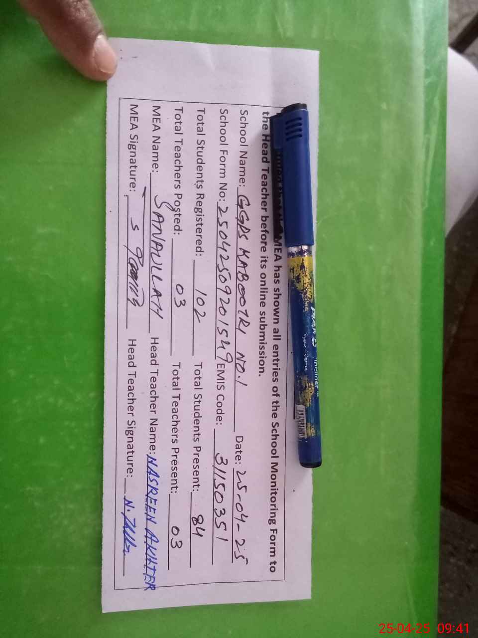 | EMIS Code: 31150351 | Name of School: GGPS KABOOTRI NO. 1 | |||