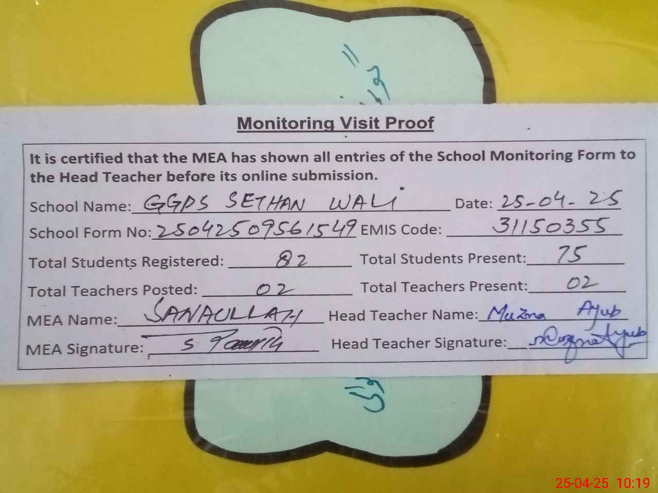| EMIS Code: 31150355 | Name of School: GGPS SETHAN WALI | |||