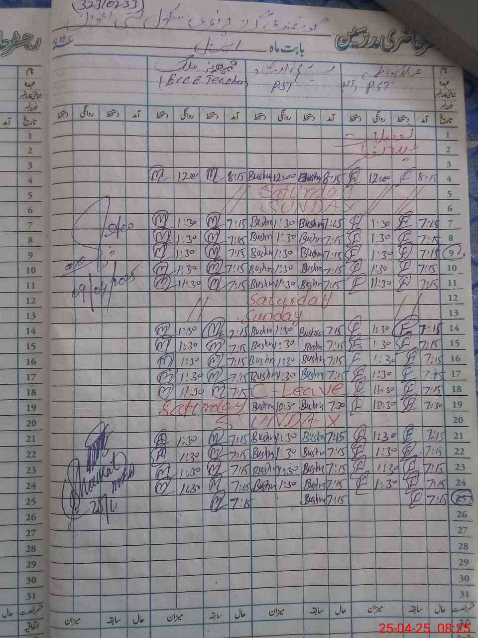 | Name: GH**** FA**** Designation: (School Headmaster's/Headmistress's) PST Phone/Cell Number: 03**** |
