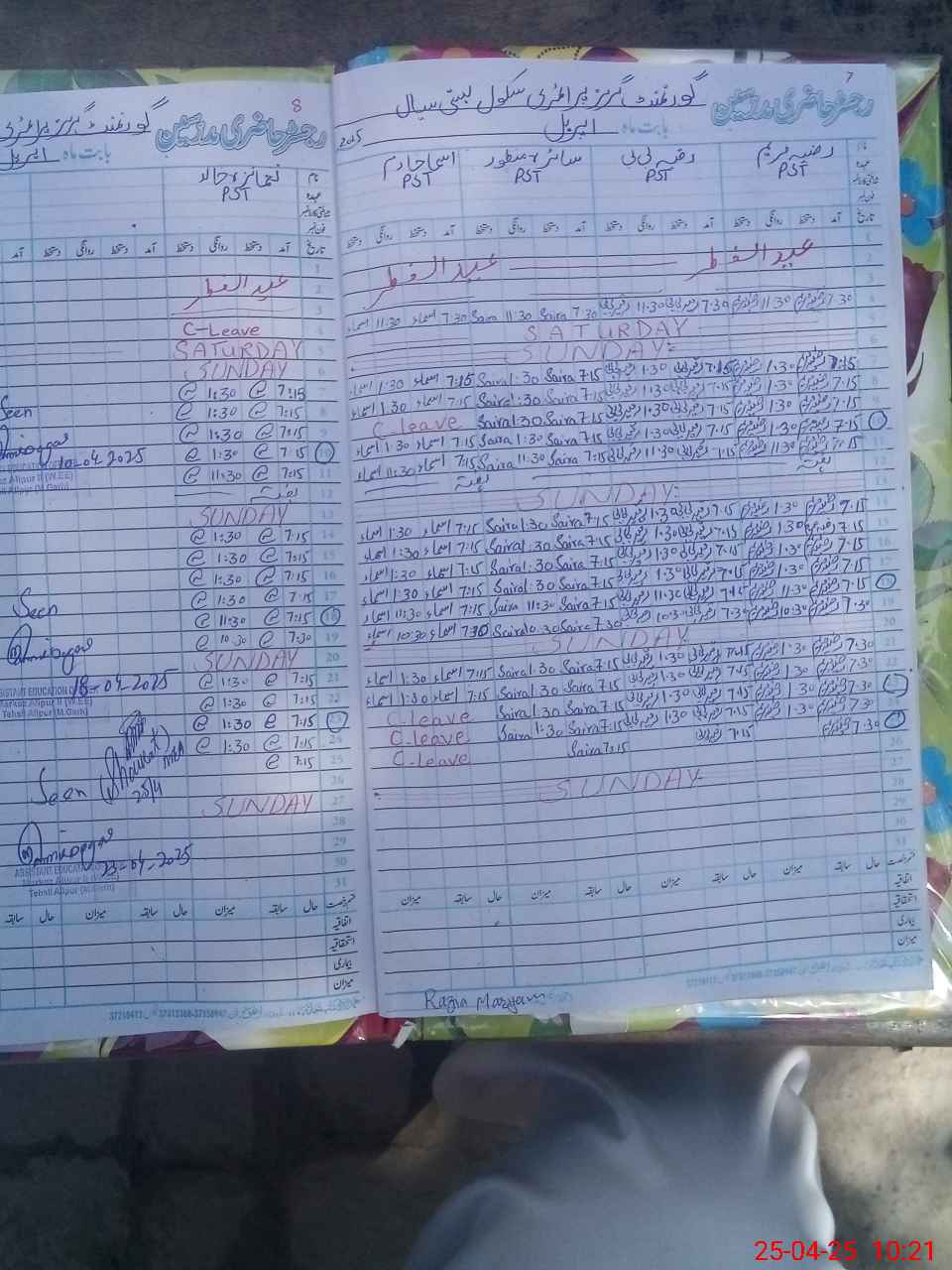 | Name: RA**** MA**** Designation: (School Headmaster's/Headmistress's) PST Phone/Cell Number: 03**** |