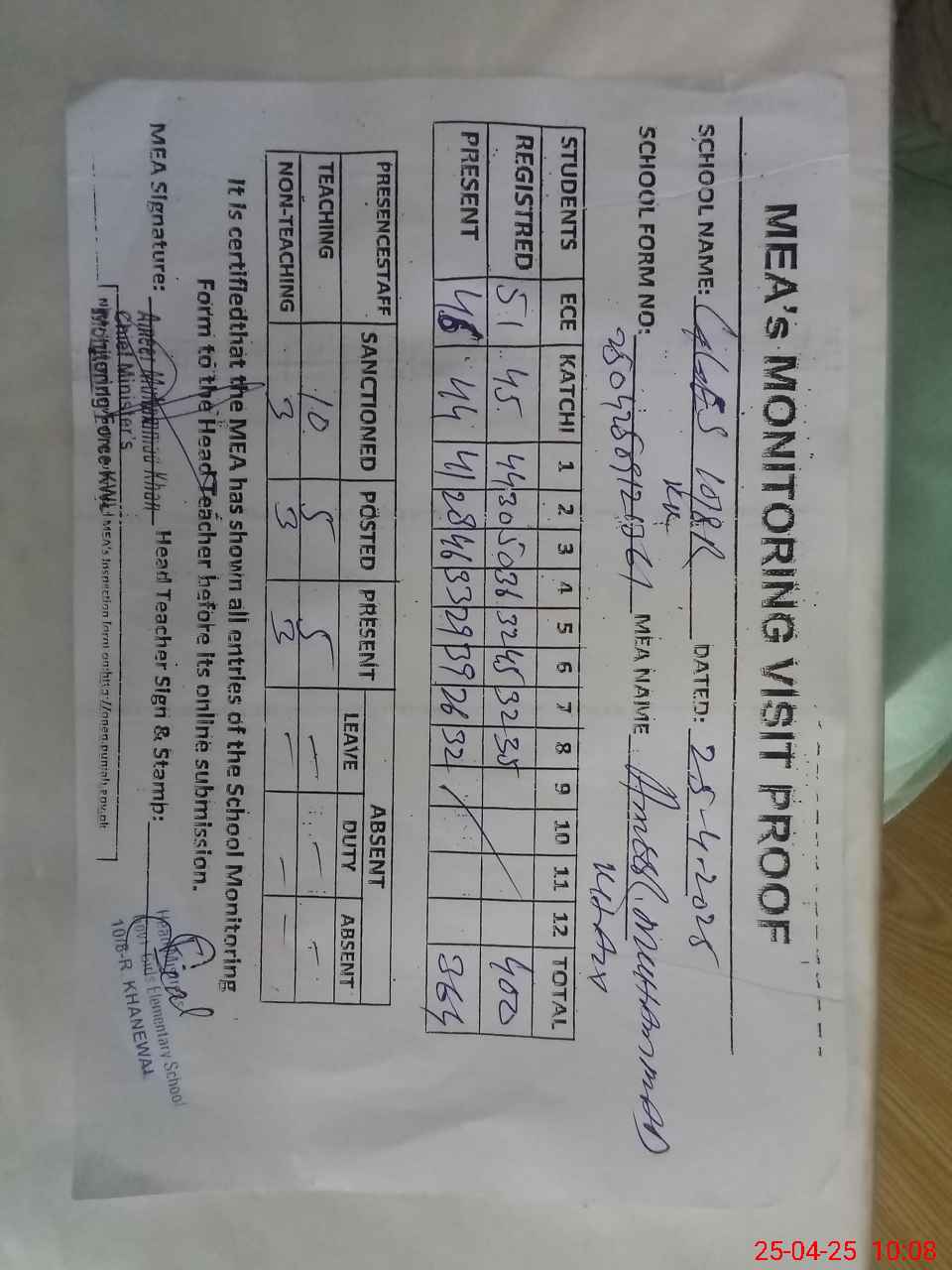 | EMIS Code: 36420111 | Name of School: GGES 10/8-R, KACHA KHUH | |||