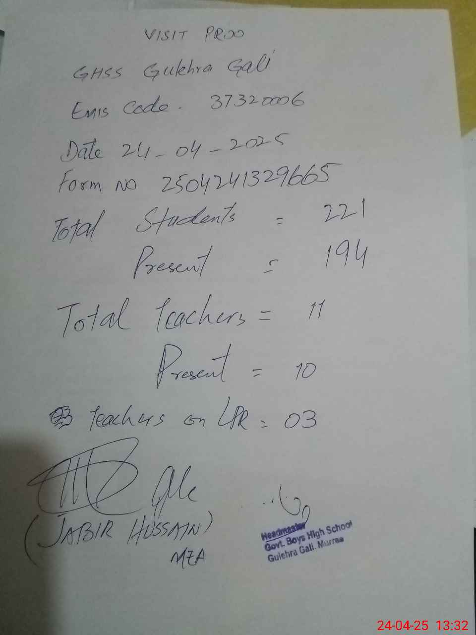 | EMIS Code: 37320006 | Name of School: GHSS GULEHRA GALI | |||