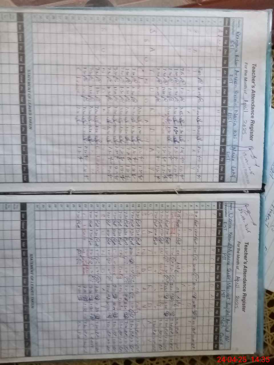 | Leave | Duty | Absent | Maternity | Medical | Ex- Pak |