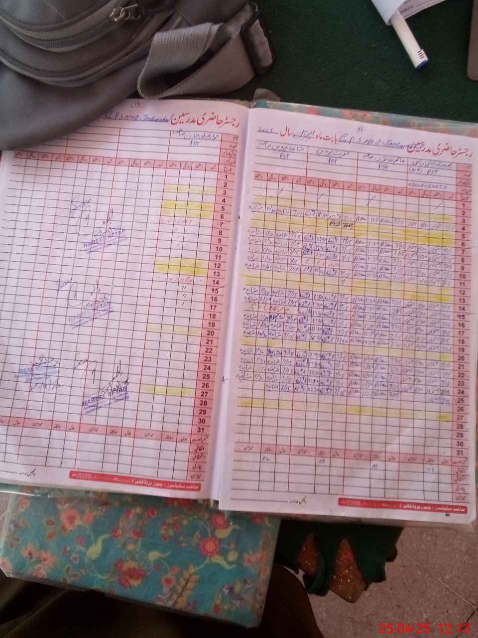 | CNIC | Full Name | Designation | R/C | Absence During Last Calender Month |