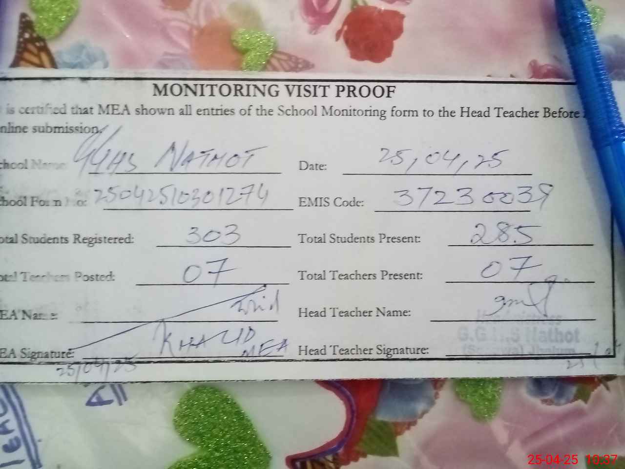 | EMIS Code: 37230039 | Name of School: GGHS NATHOT | |||