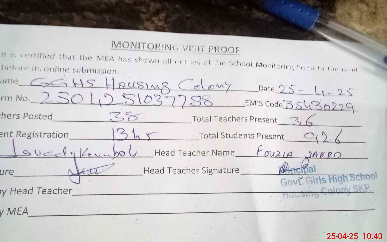 | EMIS Code: 35430229 | Name of School: GGHS HOUSING COLONY | |||