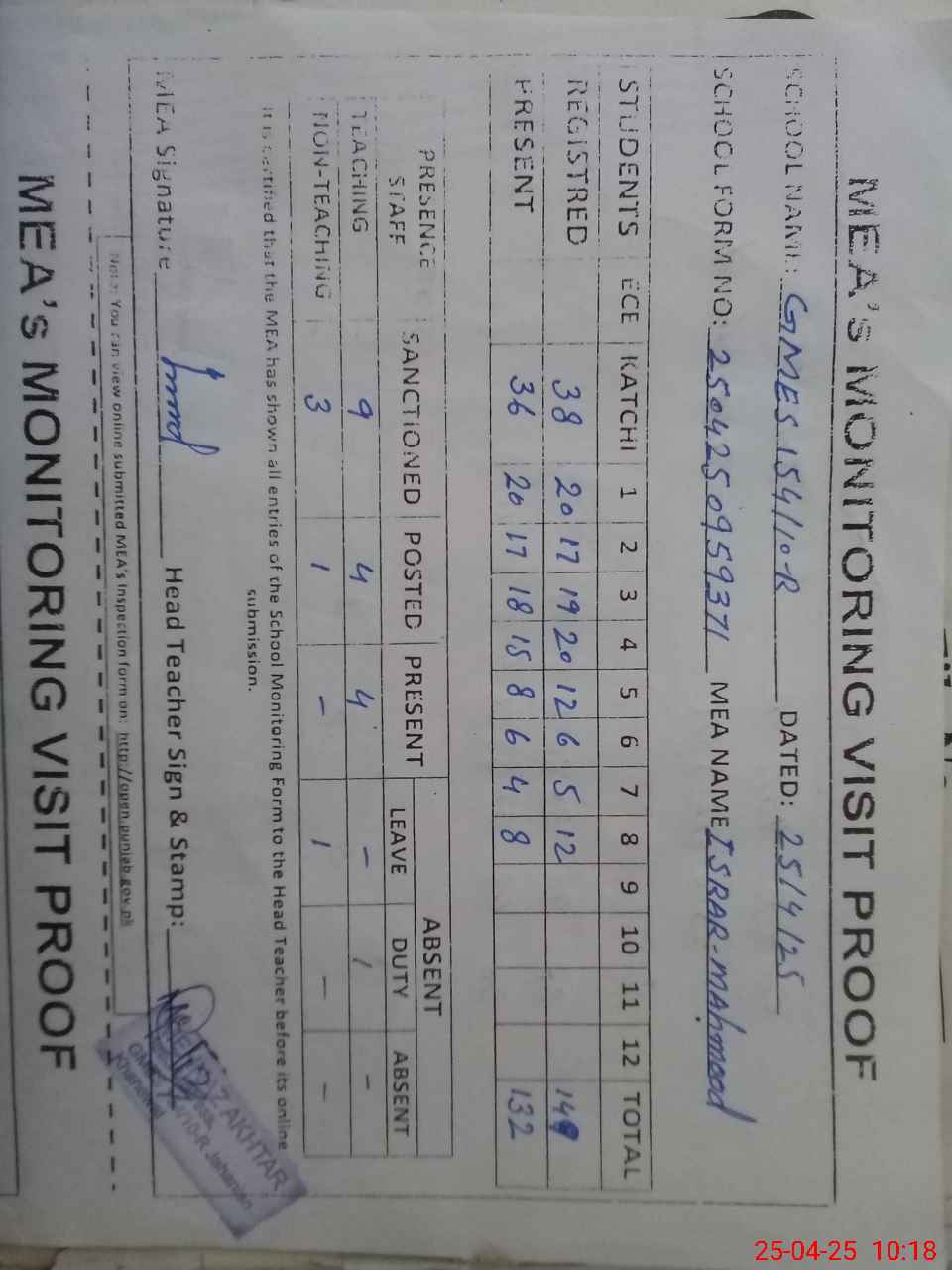 | EMIS Code: 36440548 | Name of School: GMES 154/10-R, JAHANIAN | |||