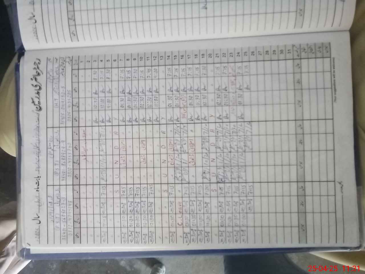 | CNIC | Full Name | Designation | R/C | Absence During Last Calender Month |