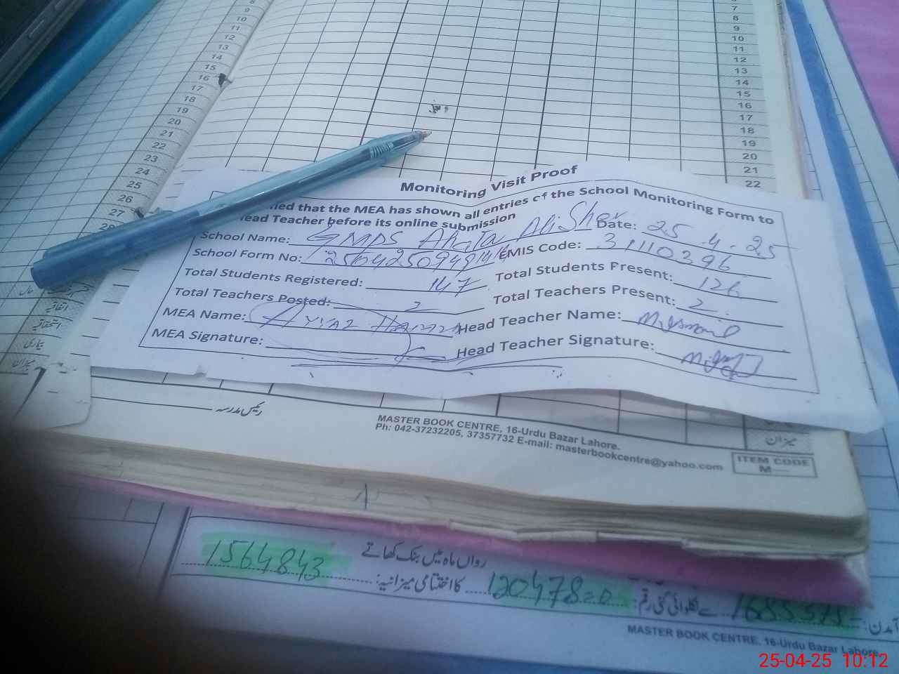| EMIS Code: 31110396 | Name of School: GMPS AHATA ALI SHER | |||
