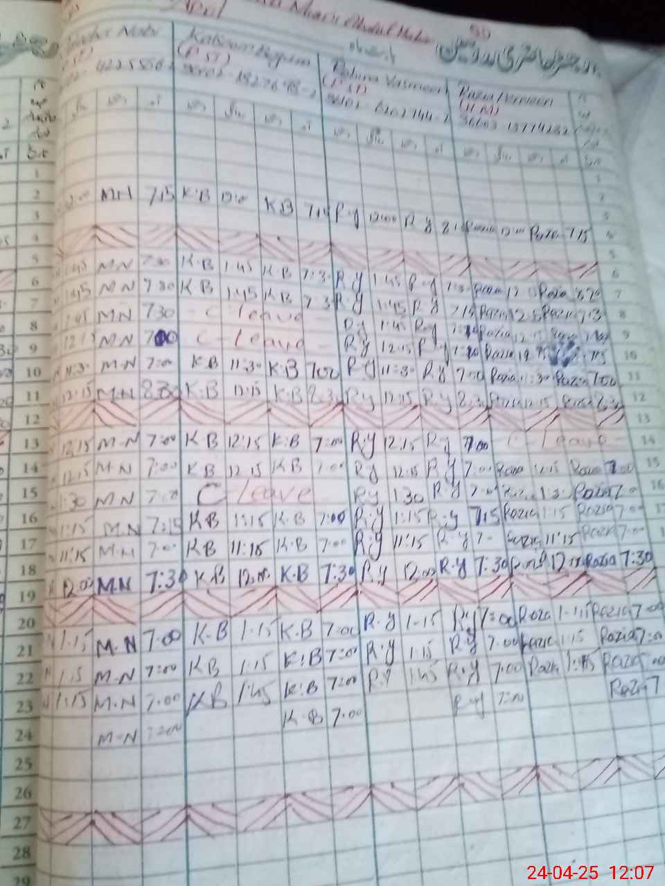 | CNIC | Full Name | Designation | R/C | Absence During Last Calender Month |