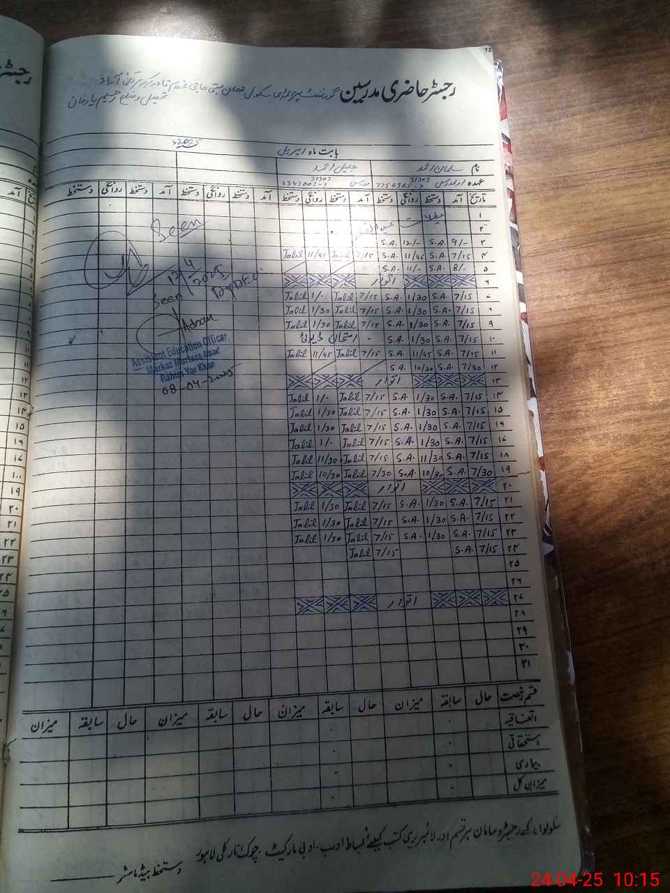 | CNIC | Full Name | Designation | R/C | Absence During Last Calender Month |