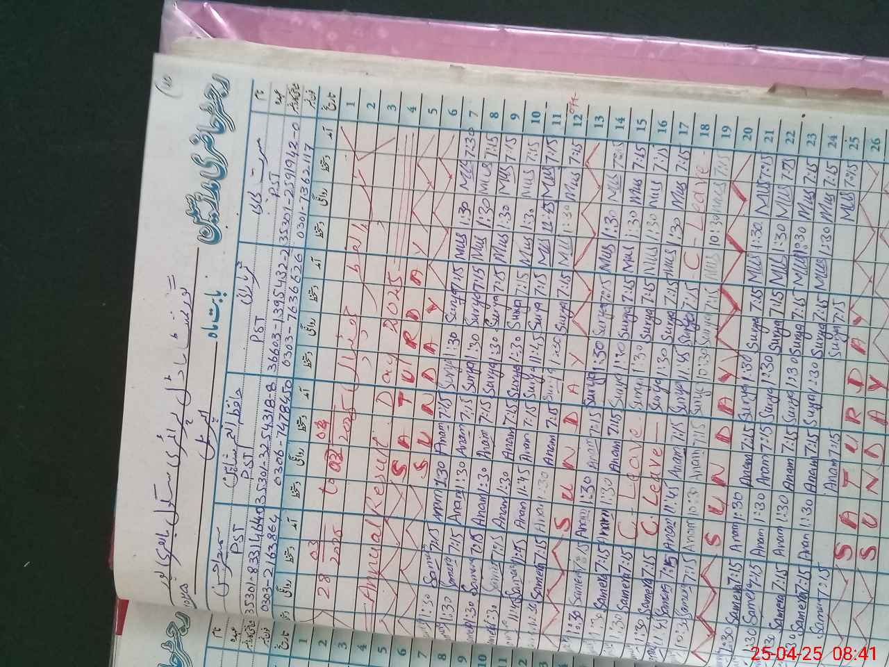 | CNIC | Full Name | Designation | R/C | Absence During Last Calender Month |