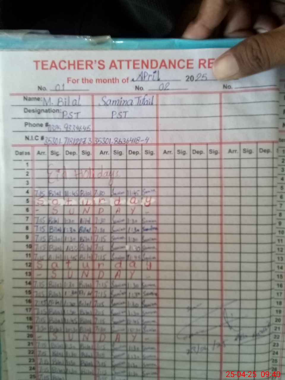 | Name: MU**** Bi**** Designation: (School Headmaster's/Headmistress's) PST Phone/Cell Number: 03**** |