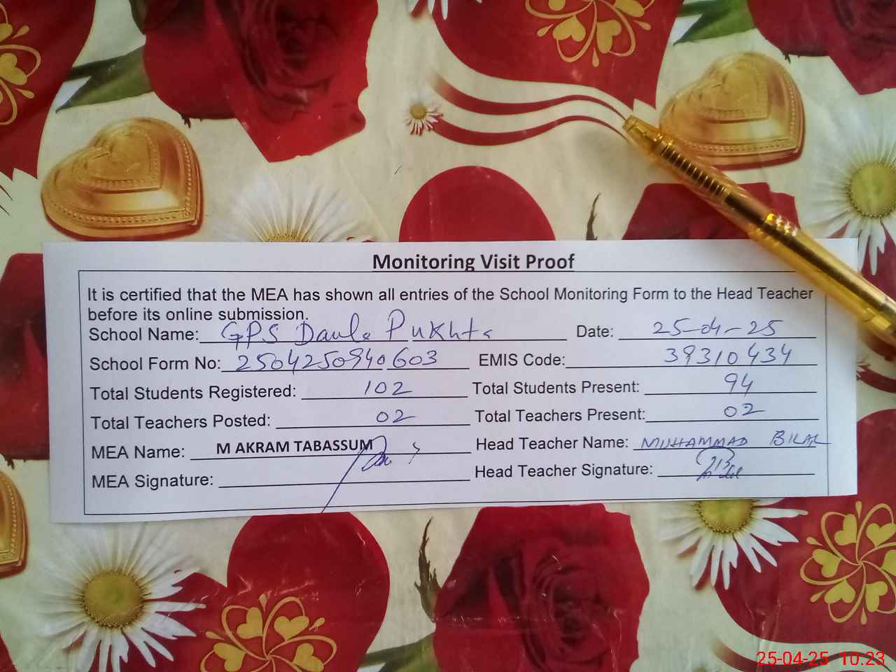 | EMIS Code: 39310434 | Name of School: GPS DAULA PUKHTA | |||