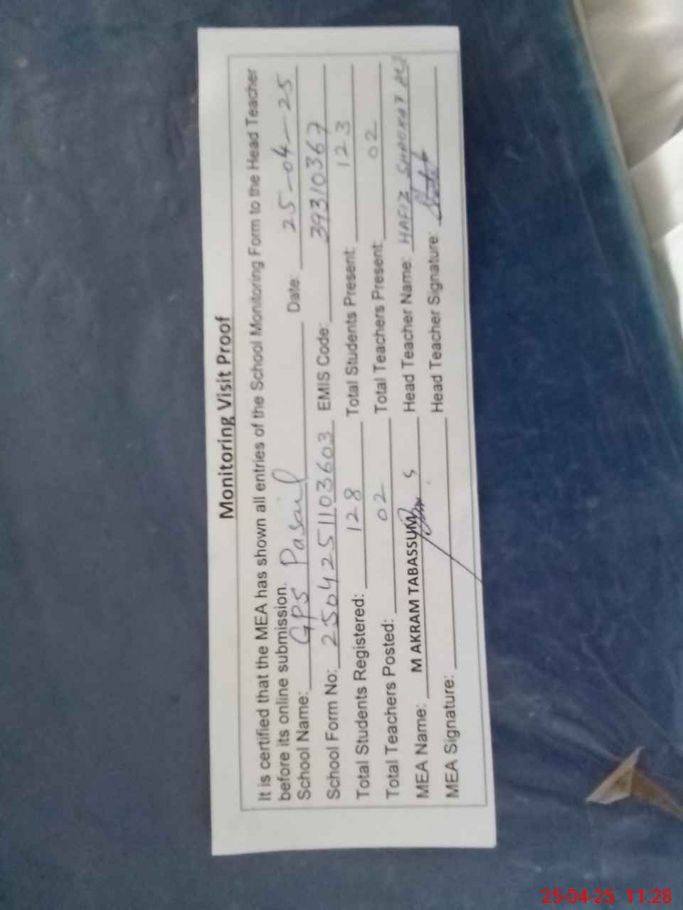| EMIS Code: 39310367 | Name of School: GPS PASAIL | |||