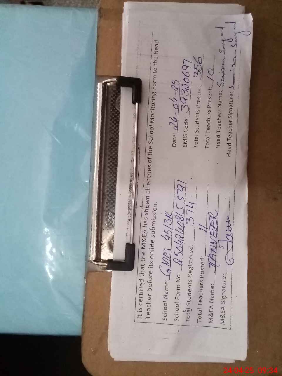 | EMIS Code: 39320697 | Name of School: GMES CHAK 45/3-R | |||
