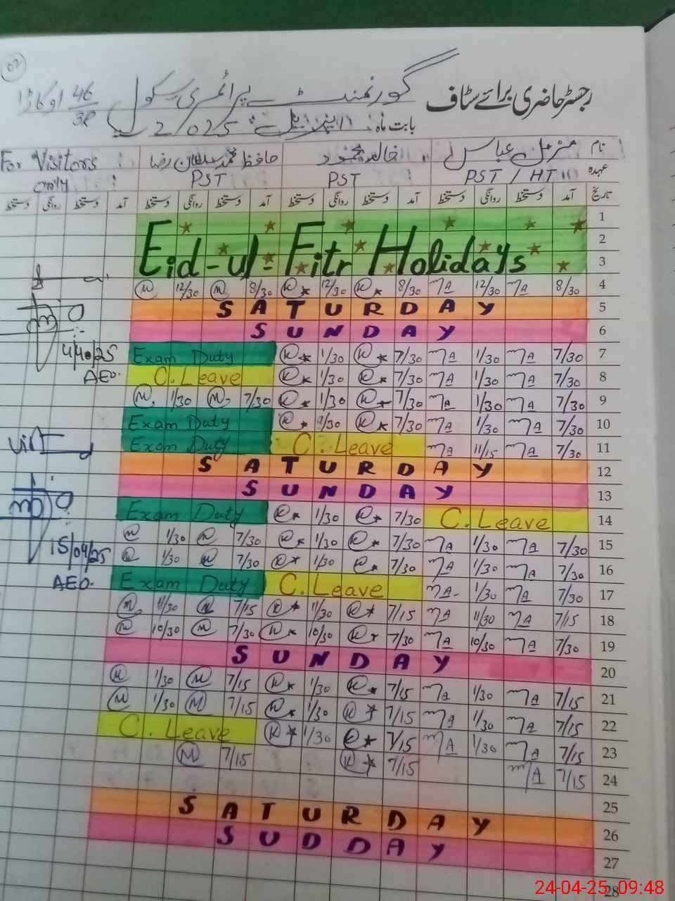 | Leave | Duty | Absent | Maternity | Medical | Ex- Pak |