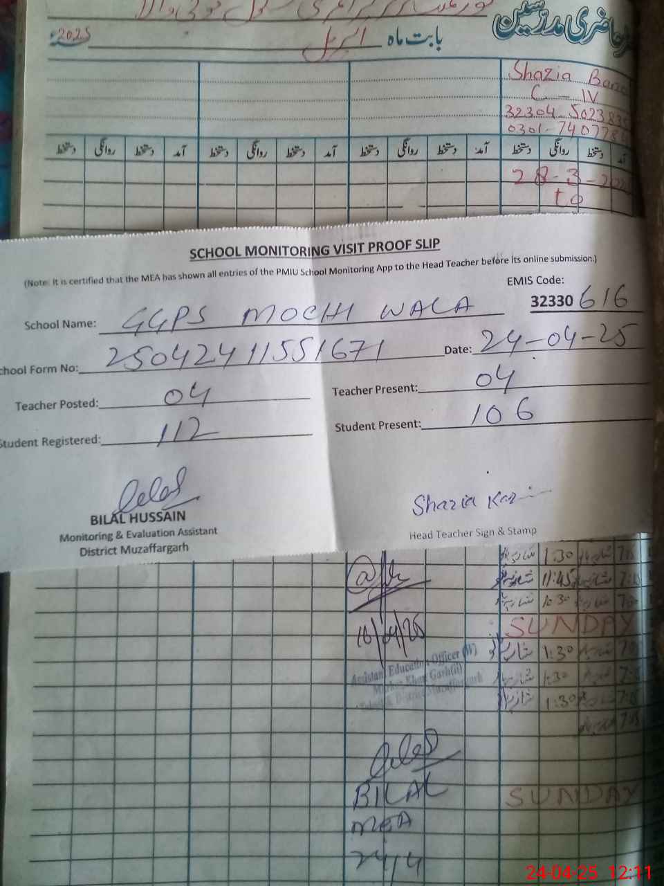 | EMIS Code: 32330616 | Name of School: GGPS MACHI WALA | |||