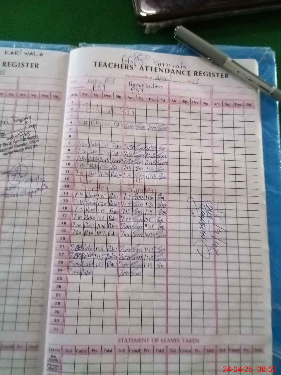 | Leave | Duty | Absent | Maternity | Medical | Ex- Pak |