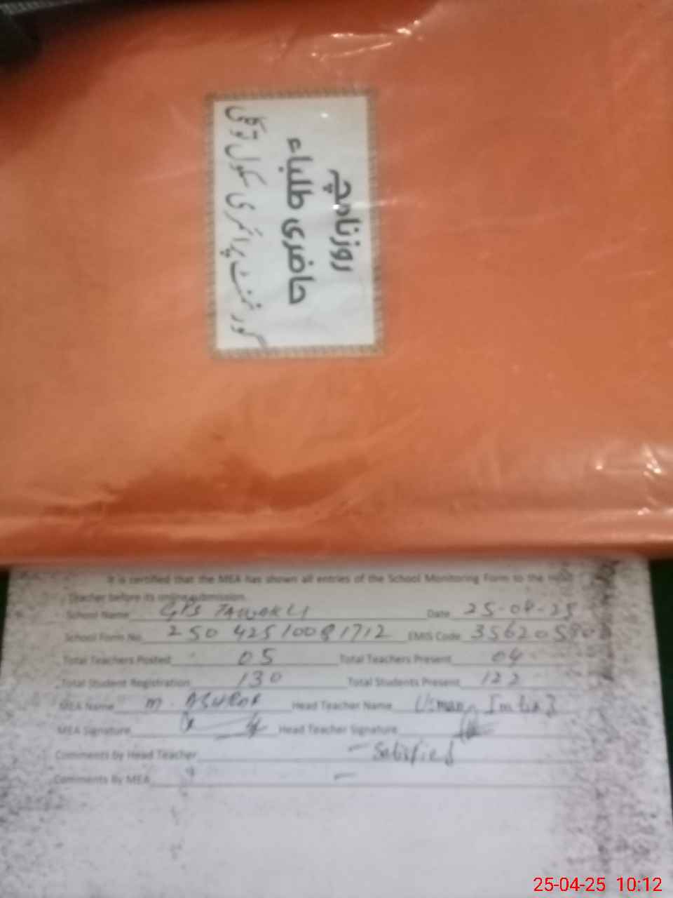 | EMIS Code: 35620590 | Name of School: GPS TAWAKLI SAFADAR ABAD | |||