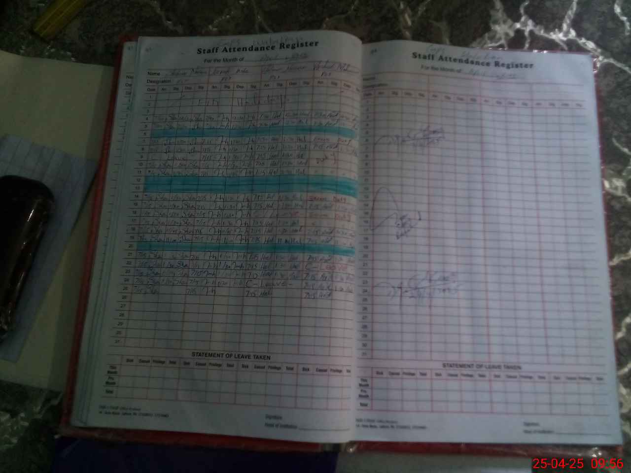 | CNIC | Full Name | Designation | R/C | Absence During Last Calender Month |