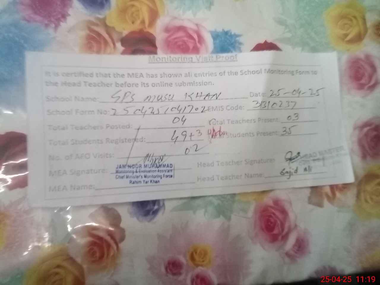 | EMIS Code: 31310237 | Name of School: GPS MUSU KHAN | |||