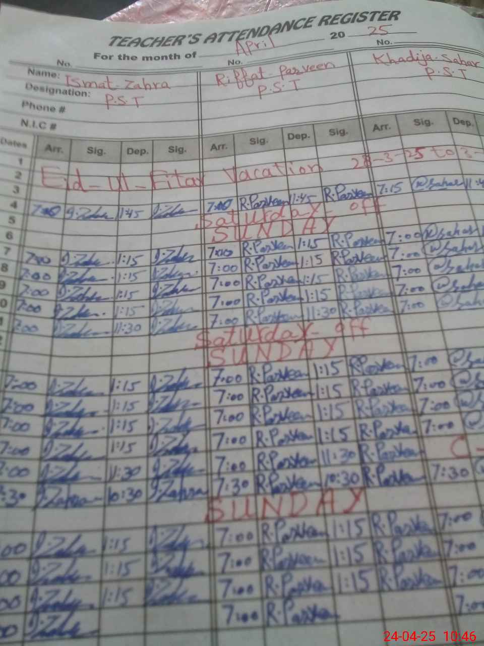 | Name: IS**** ZA**** Designation: (School Headmaster's/Headmistress's) PST/PTC/JV Phone/Cell Number: 03**** |