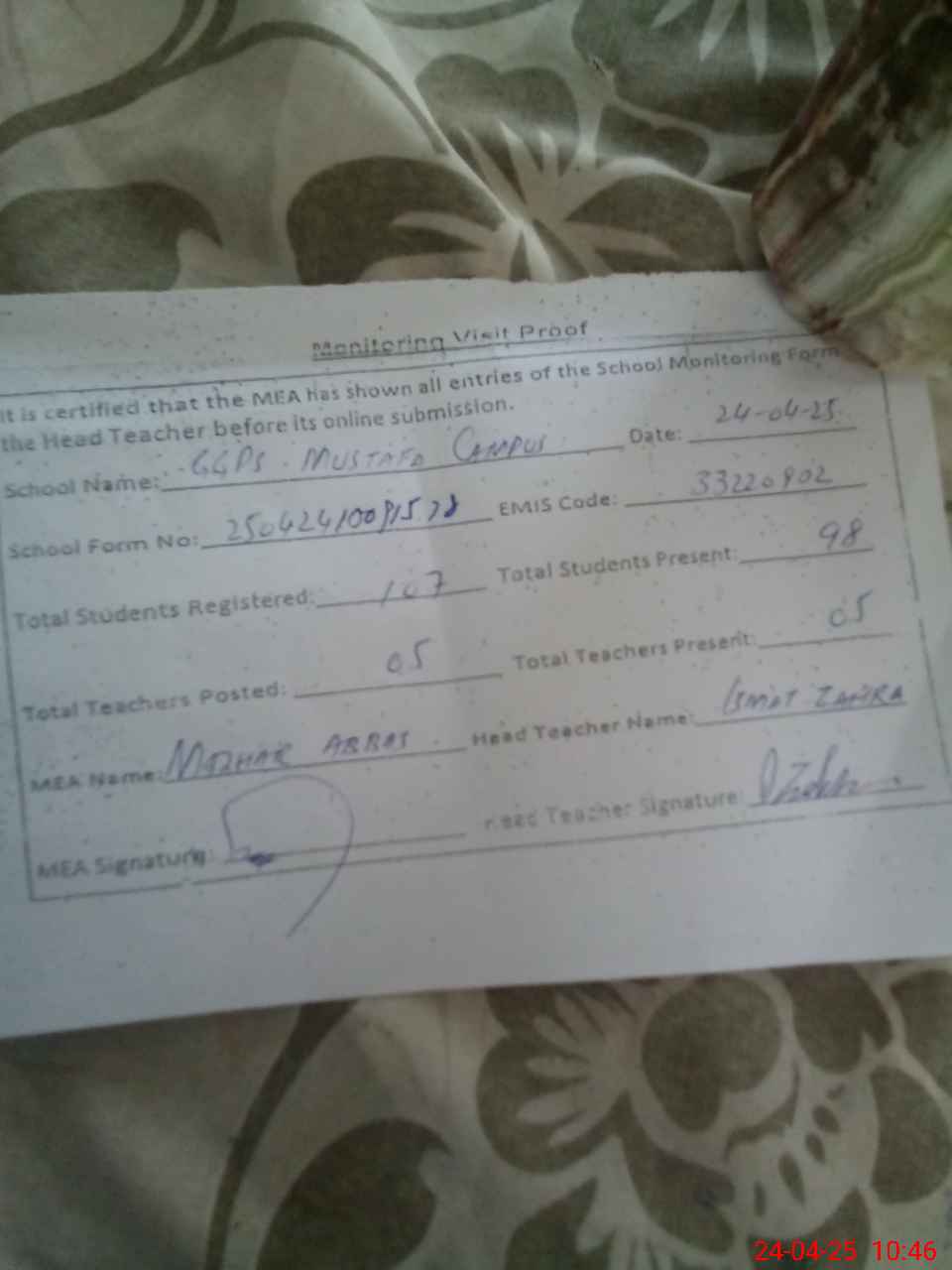 | EMIS Code: 33220902 | Name of School: GGPS MUSTAFA (SAW) CAMPUS | |||