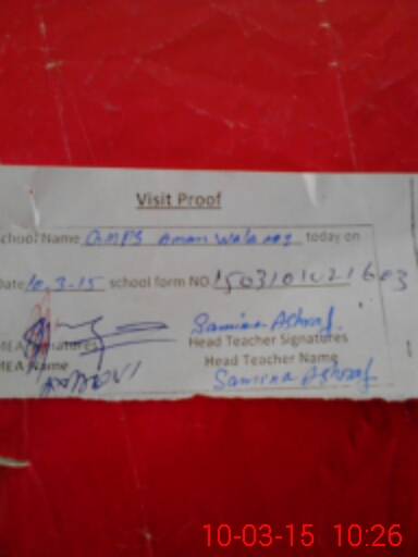 | EMIS Code: 39310580 | Name of School: GMPS AMAN WALA NO. 1 | |||