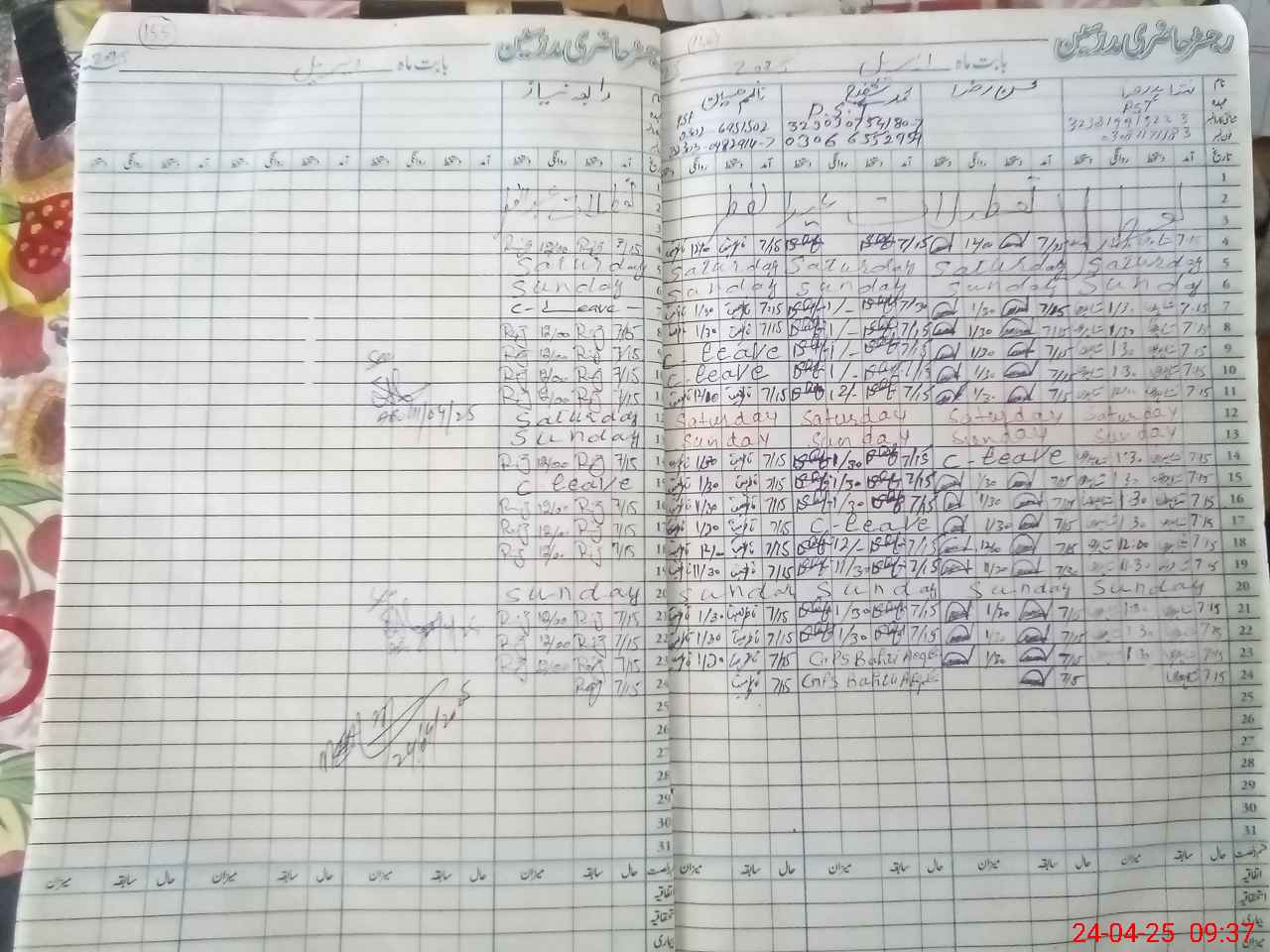 | CNIC | Full Name | Designation | R/C | Absence During Last Calender Month |