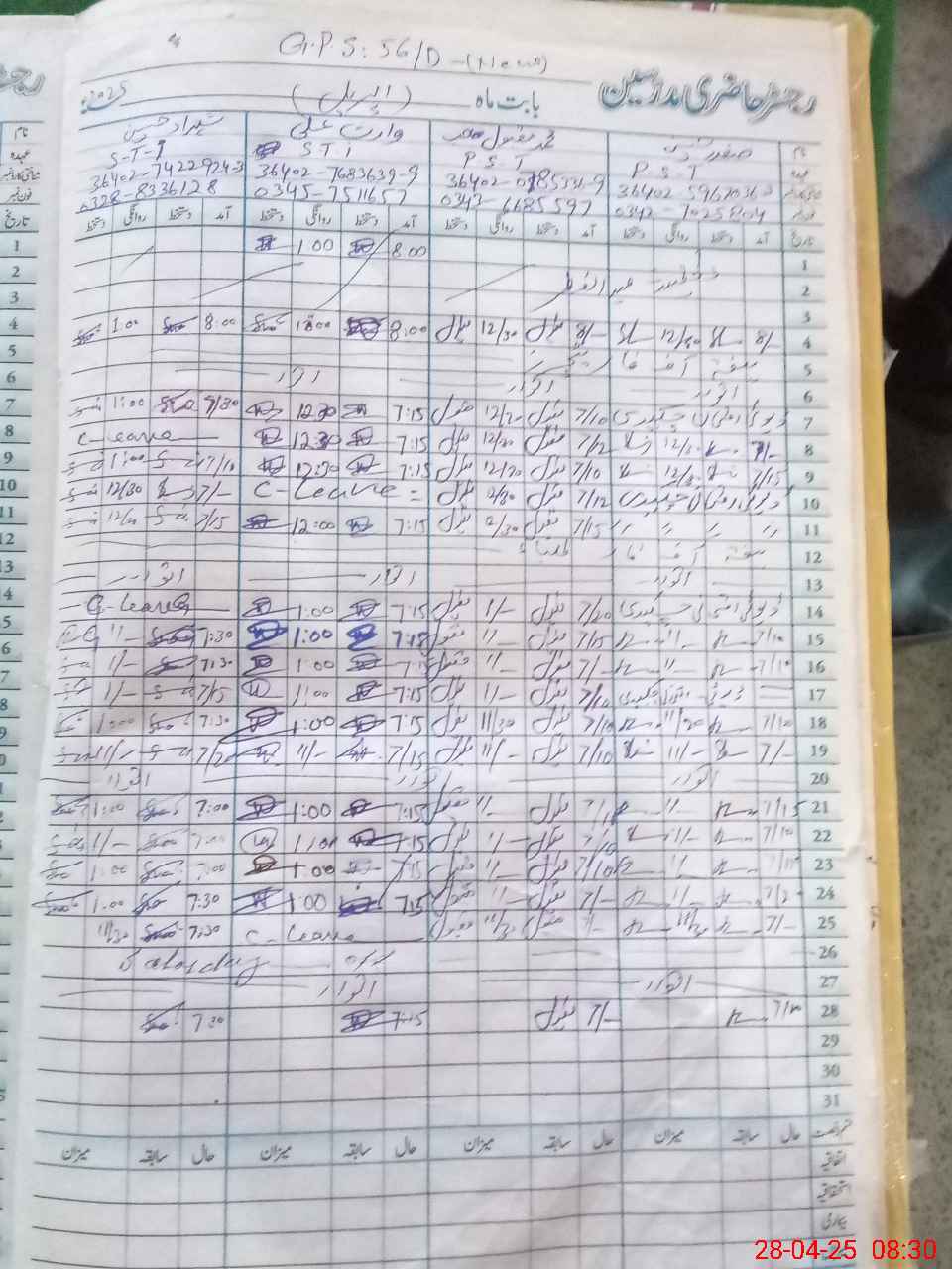 | CNIC | Full Name | Designation | R/C | Absence during last cal. month |